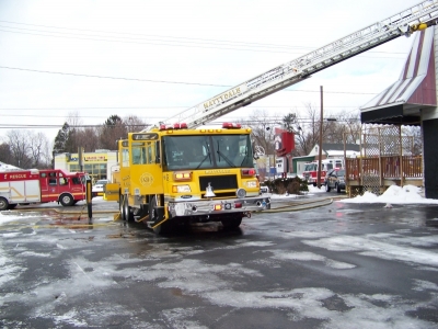The Mattydale Fire Department was activated on Monday, January 5, 2008 at 10:47am for a building fire at 3504 Brewerton Road. Along with Mattydale FD the box alarm summoned N. Syracuse Truck 1, Lyncourt T-2, and Moyers Corners R-3 as our RIT. Added to the alarm was Liverpool E-91, a staffed engine out of Liverpool station 2.