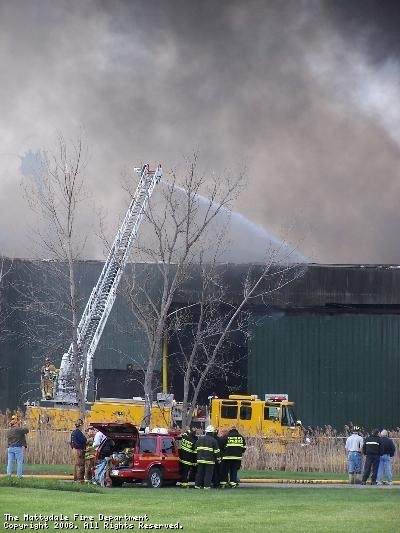 Quint 3 operates at a 4 alarm fire in Moyers Corners Dispatched as RIT, Mattydale was once again challenged to take up a defensive position on a large recycling warehouse type structure that was well involved on arrival. Quint 3's crew operated throughout the fire with numerous tasks including setting up portable masterstreams, making entry points in the building for large streams and even pumping to a NYSANG crash truck! (4/23/2005) |